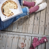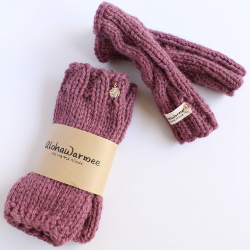 ニットデザイナー中村英里子さん監修”eknit-loop”とコラボの「2warmee’s with me 」は、long丈のアンクルウォーマーとハンドウォーマーのセットです。ハンドウォーマーは指先が開いているので手先を使うときにも便利です!アルパカを含んだ太めの毛糸で編んでいますので、厚手で暖か♪くすみカラーの「フランボワーズ」は肌写りの良いカラーでおすすめです。寒さが厳しくなってくるこれからの季節、手首・足首の防寒対策にご活用ください。